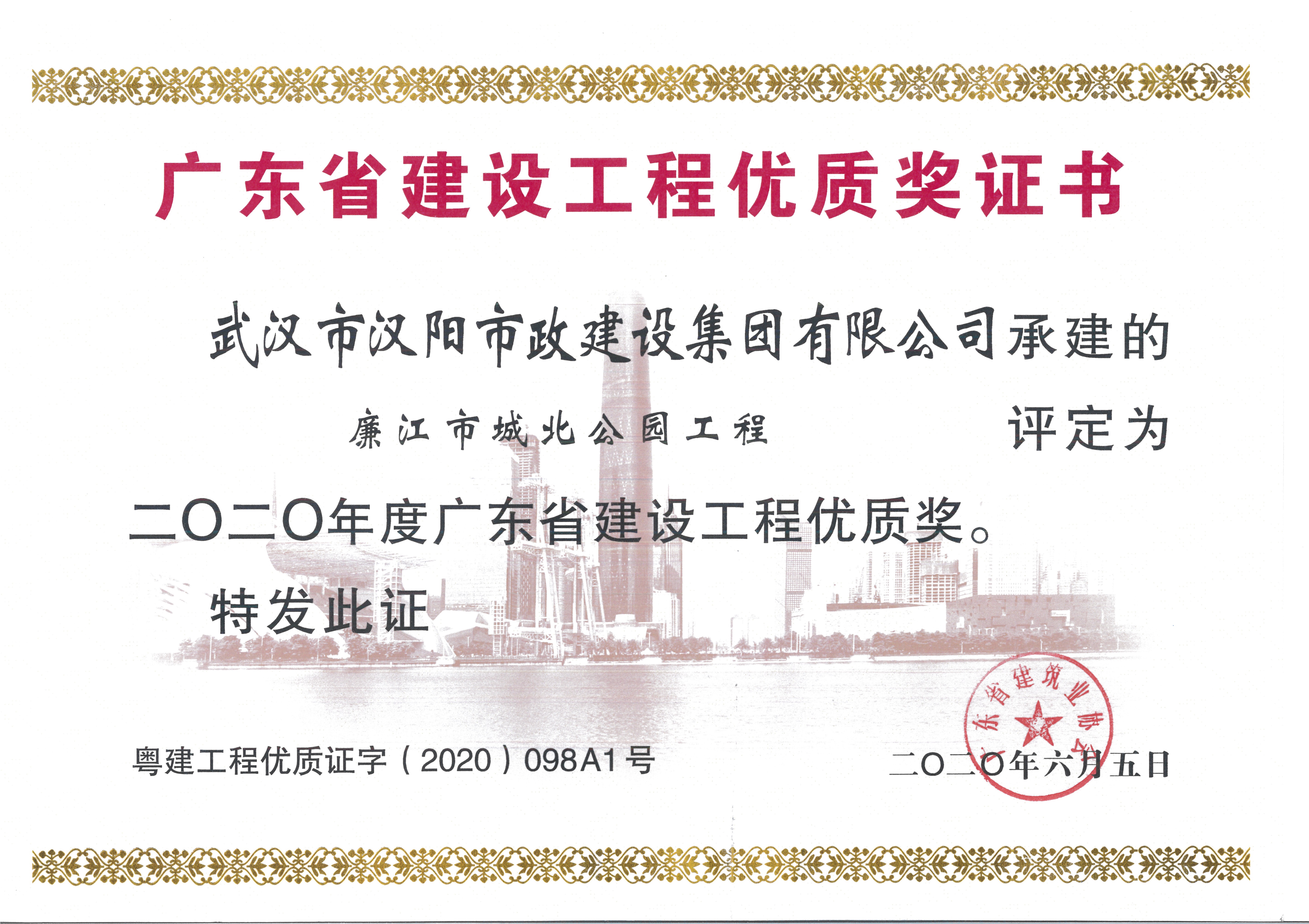 近日,廣東省建筑業(yè)協(xié)會(huì)公布了《2020年度廣東省建設(shè)工程優(yōu)質(zhì)獎(jiǎng)名單》,由漢陽(yáng)市政承建的廉江市城北公園工程,榮獲廣東省建設(shè)工程優(yōu)質(zhì)獎(jiǎng),此次獲獎(jiǎng)是漢陽(yáng)市政在省外獲得的最高工程獎(jiǎng)項(xiàng)。
