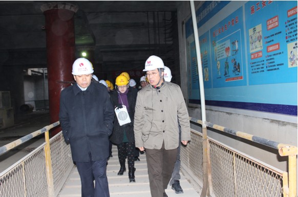隨后,徐憲平一行深入到地下負(fù)二層,親臨地鐵施工現(xiàn)場,參觀地下隧道施工以及維護(hù)結(jié)構(gòu),見證洪山廣場站的施工過程。隨行人員向其簡要介紹了隧道施工情況。他指出,在軌道交通建設(shè)中,要堅持科學(xué)規(guī)劃、有序建設(shè),確保安全第一。