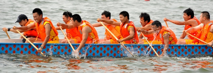 比賽當(dāng)天,經(jīng)過短暫的熱身后,比賽正式拉開帷幕。我公司參賽隊伍在鼓手李文華的指揮下,同心協(xié)力,奮勇向前。大家和著整齊的號子,用力地劃著槳,個個揮汗如雨,人人精神飽滿,看臺上的同事高聲吶喊,吹笛加油。經(jīng)過緊張的角逐,我公司參賽隊伍以小組第二名的成績順利進入半決賽。