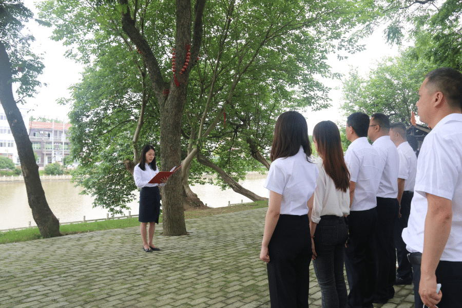 ? ? ? 參觀完革命舊址,大家來到河邊空地,進(jìn)行政治生日儀式?!?span style="background:white">這是我47年來最特殊的一次‘生日’,而這張精美的‘生日賀卡’,承載著黨組織對(duì)我的信任和期望。”樊成霖同志在生日感言中說。