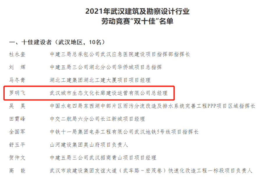在2021年第七屆武漢建筑及勘察設(shè)計(jì)行業(yè)勞動(dòng)競賽“雙十佳”選樹活動(dòng)中,羅明飛獲評(píng)武漢地區(qū)十佳建設(shè)者,漢陽市政承建的廣東佛山勒流街道(稔海、東風(fēng)、新安)污水管網(wǎng)工程獲評(píng)外埠地區(qū)十佳創(chuàng)新項(xiàng)目。