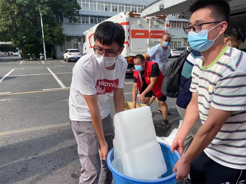 機(jī)關(guān)支部黨員在國(guó)棉社區(qū)搬運(yùn)冰塊