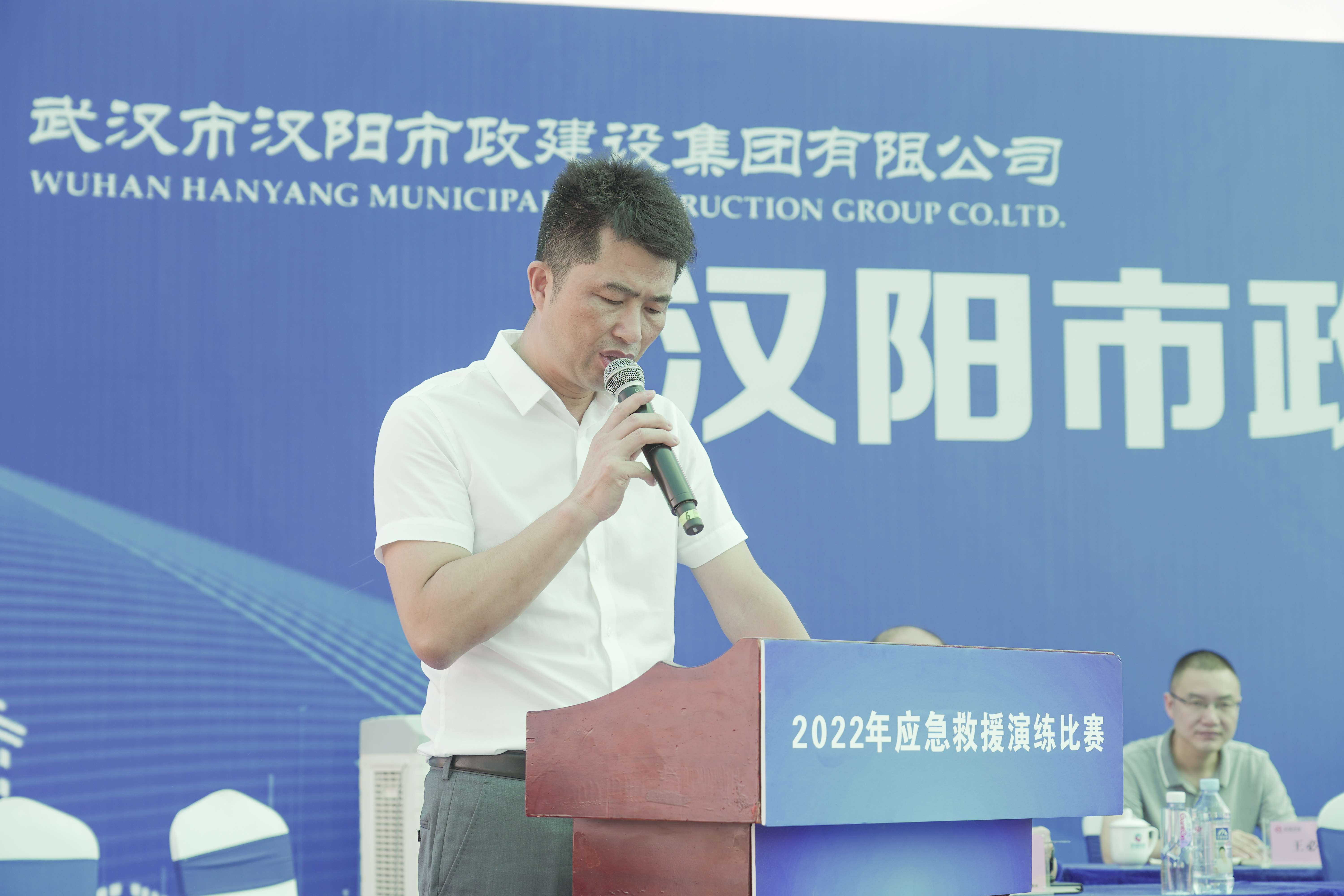 6月27日上午,漢陽市政在漢江南岸綜合治理項(xiàng)目部開展2022年安全應(yīng)急救援技能比武大賽。本次比賽由武漢市漢陽區(qū)國(guó)有資產(chǎn)監(jiān)督管理局主辦,漢陽市政承辦、天創(chuàng)建設(shè)協(xié)辦。湖北省建設(shè)工程質(zhì)量安全監(jiān)督站站長(zhǎng)楊碧華、湖北省住房和城鄉(xiāng)建設(shè)廳質(zhì)安處副處長(zhǎng)帥元新、武漢市城鄉(xiāng)建設(shè)局質(zhì)安處廉新斌、武漢市建設(shè)工程安全監(jiān)督站閻鵬,漢陽區(qū)應(yīng)急管理局局長(zhǎng)李漢光、區(qū)建設(shè)局局長(zhǎng)胡紅勝、區(qū)國(guó)資局副局長(zhǎng)高明、區(qū)建筑管理站站長(zhǎng)王晟,漢陽市政總經(jīng)理王智高、總工程師荊武等出席活動(dòng)。