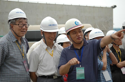 鈕新強(qiáng)(左三)向三峽工程蓄水驗(yàn)收組專家介紹情況