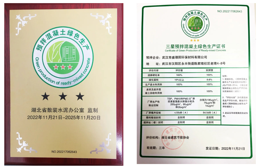 ? ? 近日,喜報(bào)傳來(lái),漢陽(yáng)市政盛璟陽(yáng)公司順利通過(guò)評(píng)審程序,相繼取得了“三星預(yù)拌混凝土綠色生產(chǎn)評(píng)價(jià)證書”及“綠色建材三星認(rèn)證證書”,成為一家榮獲“綠色生產(chǎn)+綠色建材”雙三星認(rèn)證企業(yè)。