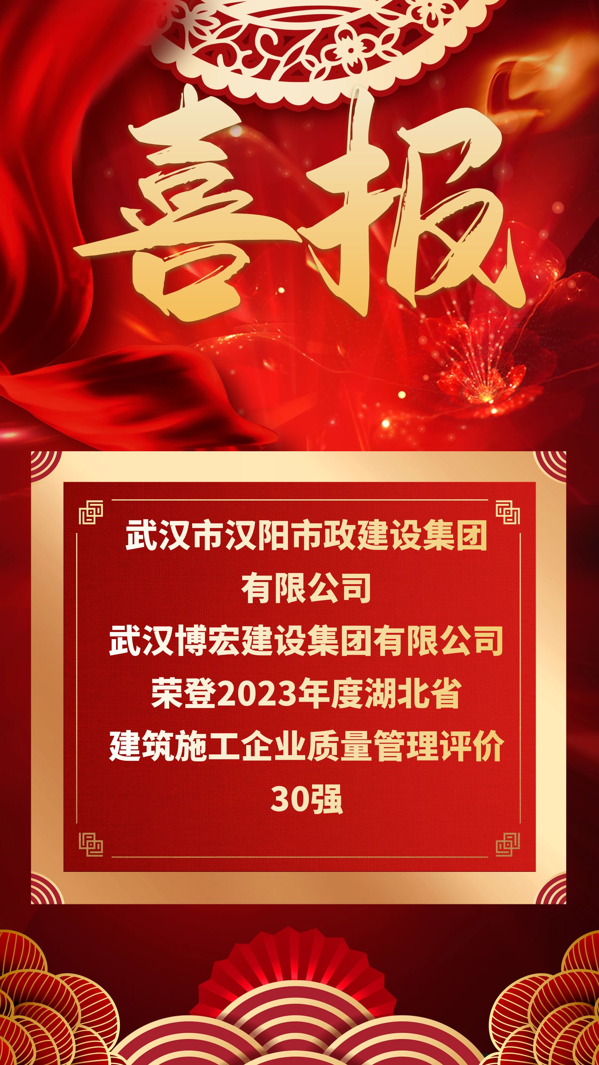 近日,湖北省建設(shè)工程質(zhì)量安全協(xié)會(huì)公布2023年度湖北省建筑施工企業(yè)質(zhì)量管理評(píng)價(jià)30強(qiáng)名單,漢陽(yáng)市政及其下屬子公司博宏建設(shè)再次榮登榜單。