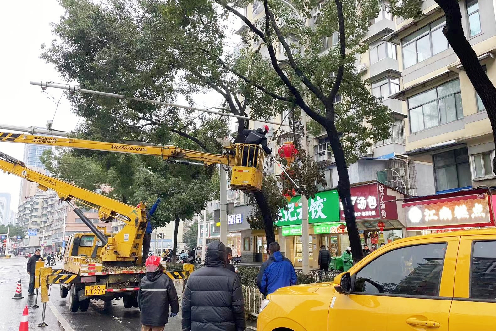 面對天氣預警,漢陽市政迅速響應,組織專班人員,配備高枝剪、油鋸等工具,調(diào)度升降車、運輸車前往琴臺大道、漢陽大道、龜北路等漢陽區(qū)主干道進行巡查并提前清理斷枝,排除安全隱患。自2月22日上午8時起,公司再次啟動24小時動態(tài)巡查機制,晝夜交替進行道路沿線巡查,發(fā)現(xiàn)斷枝情況及時組織車輛、人員進行清理,確保人行安全、道路暢通。