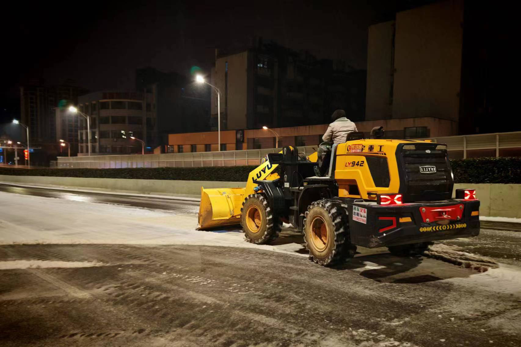 24小時不間斷,漢陽市政融雪除冰應急搶險突擊隊通宵奮戰(zhàn),積極投身到保暢保通工作當中,駕駛?cè)谘﹦┤霾架嚒㈢P車在路面循環(huán)作業(yè),在漢陽大道、江城大道、晴川大道、鸚鵡大道、國博大道、墨水湖北路、琴臺大道、楊泗港、龍陽大道、仙女山高架、二環(huán)線高架等重點區(qū)域,通過“人機聯(lián)合作戰(zhàn)”的作業(yè)模式,頂風鏟雪,保障城市交通暢通;雪中送炭,幫助受困車輛脫險。同時,應急人員積極幫助小區(qū)鏟雪,全力保障市民出行安全。