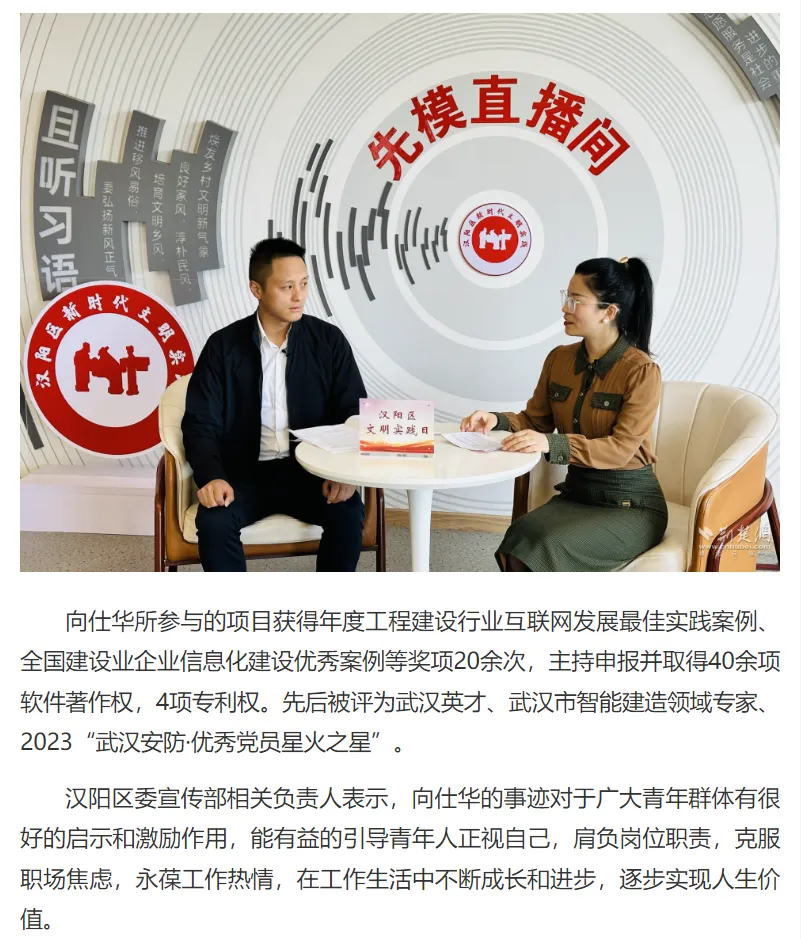 向仕華一直深耕智能建造、智慧城市領(lǐng)域,牽頭漢陽市政智慧化、數(shù)字化、信息化項(xiàng)目的建設(shè)工作,先后主導(dǎo)建設(shè)30余款軟件平臺(tái),并帶領(lǐng)團(tuán)隊(duì)打造企業(yè)級(jí)、行業(yè)級(jí)、城市級(jí)解決方案。他曾被評(píng)為“武漢英才”“武漢市智能建造領(lǐng)域?qū)<?rdquo;“2023武漢安防·優(yōu)秀黨員星火之星”。