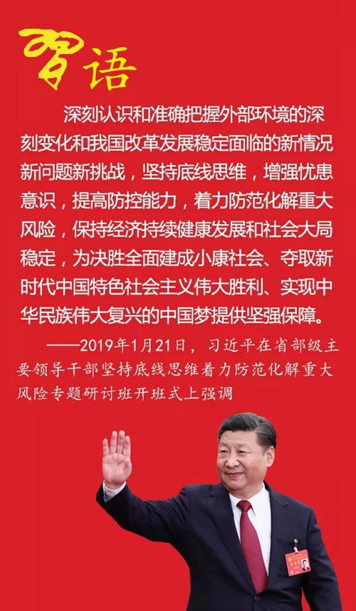 ——2019年1月21日,習近平在省部級主要領導干部堅持底線思維著力防范化解重大風險專題研討班開班式上強調